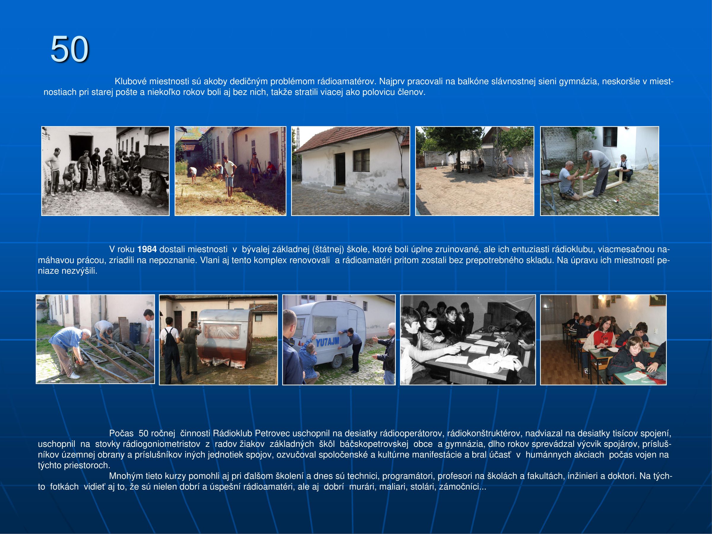 Tokom 50 godišnjeg uspešnog rada, Radio klub "Petrovec" je osposobio na desetine radio-operatora, radio-konstruktora, uspostavio na desetine hiljada radio-veza sa radio-amaterima celog sveta, osposobio na desetine radio-goniometrista iz redova učenika osnovnih škola na teritoriji opštine Bački Petrovac i Gimnazije Jan Kolar, dugi niz godina je vršio obuku vezista pripadnika teritorijalne odbrane i drugih jedinica veza, ozvučavao društvene i kulturne manifestacije i učestvovao u humanitarnim akcijama za vreme rata na ovim prostorima. Tokom 1993., 1994. i 1995. godine bio je suorganizator tri uspešna susreta radio-amatera, na kojima je prisustvovalo više od 600 učesnika.