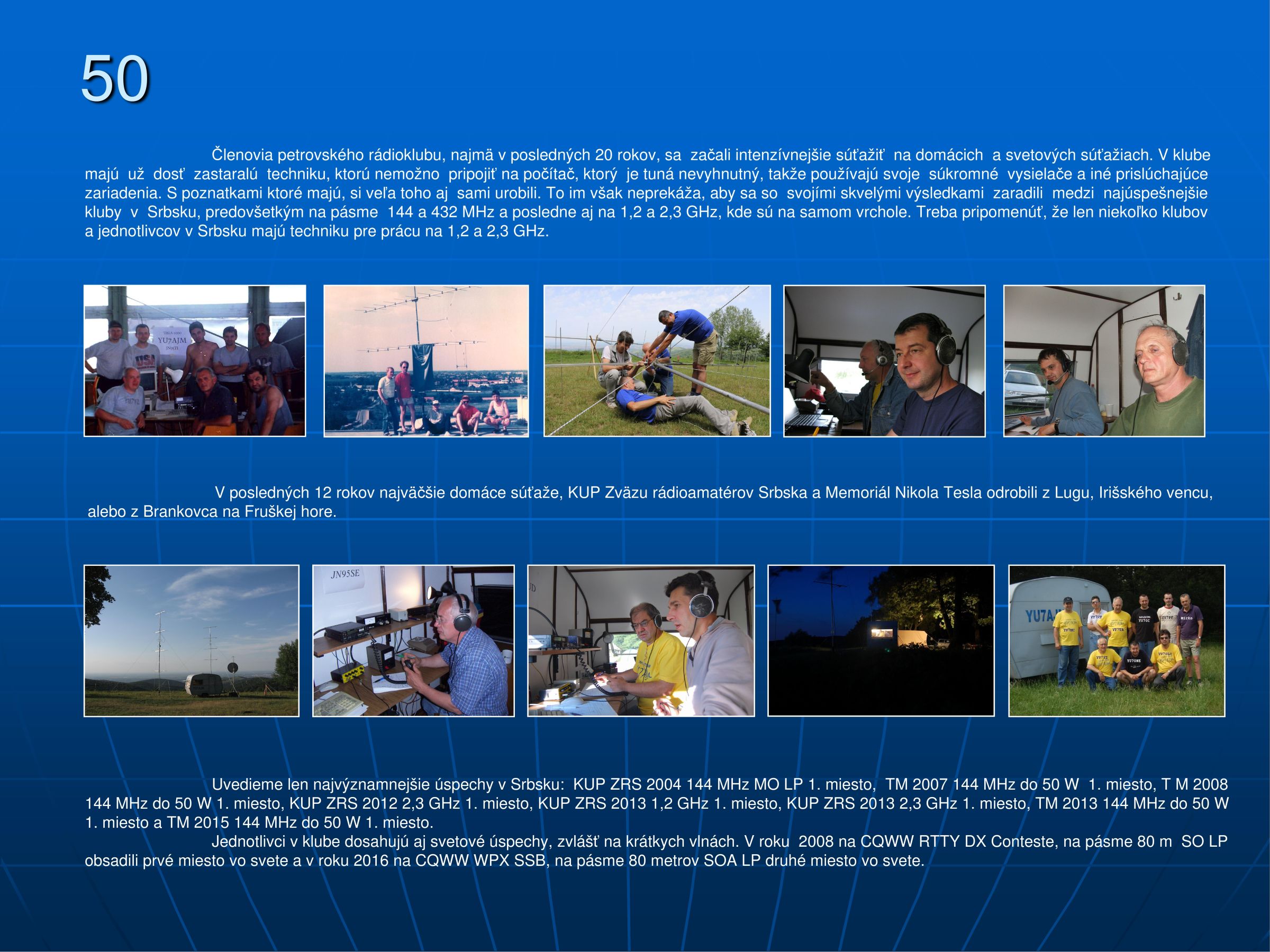 Članovi petrovačkog radio kluba, posebno zadnjih dvadeset godina, intenzivnije učestvuju na domaćim i svetskim takmičenjima. Sa svojim izuzetnim uspesima svrstali su se među najuspešnije radio klubove u Srbiji, prvenstveno na opsegu 144 i 432 MHz a zadnje vreme i na 1,2 i 2,3 GHz, gde su u samom vrhu.